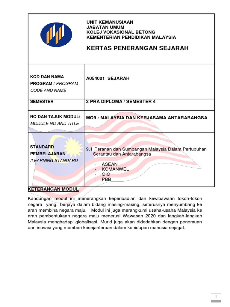 Nota Sejarah Tingkatan 5 Bab 9 Malaysia Dalam Kerjasama Antarabangsa Pdf Document