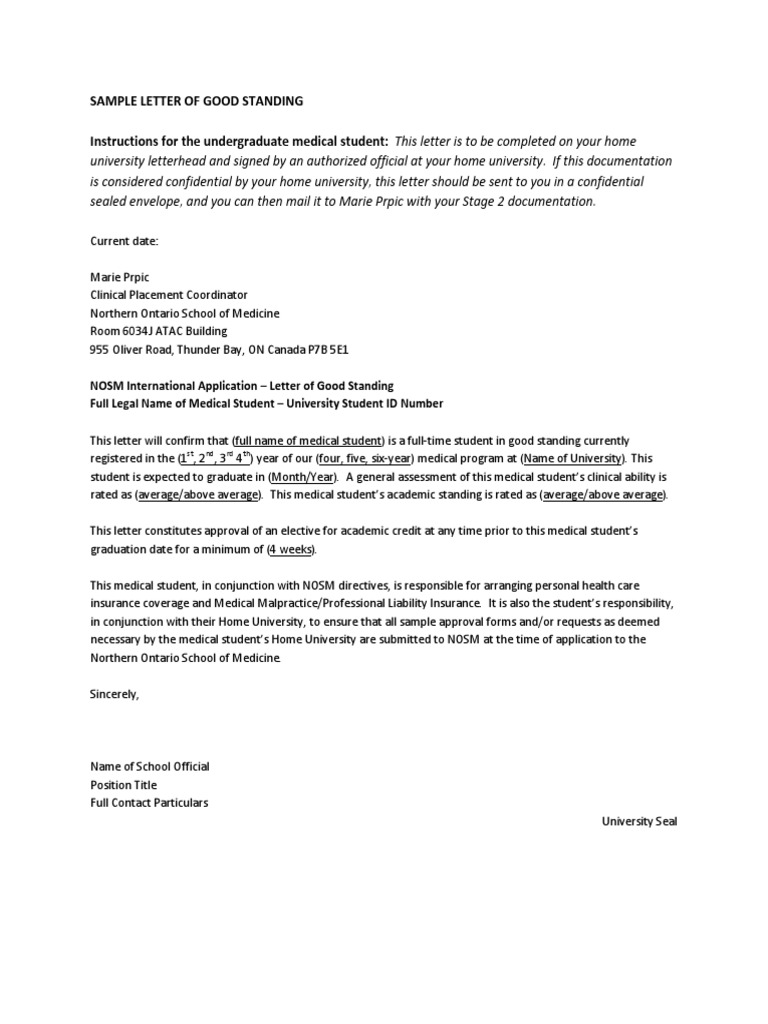 Nosm International Undergraduate Sample Letter Of Good Standing