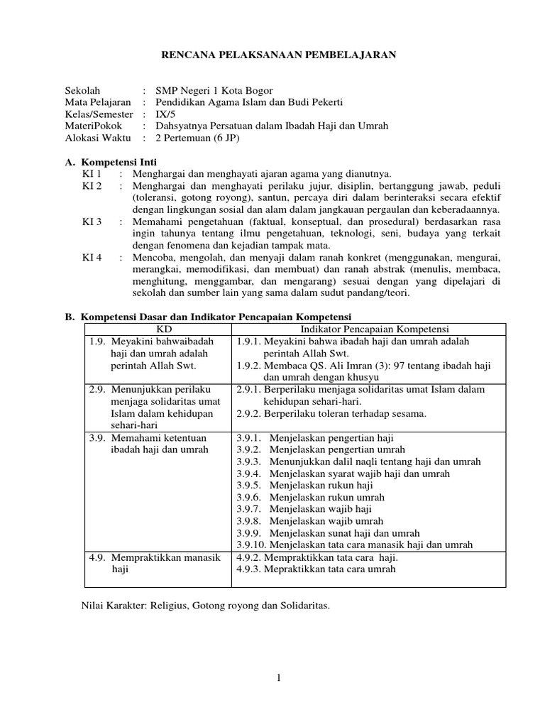 Rencana Pelaksanaan Pembelajaran