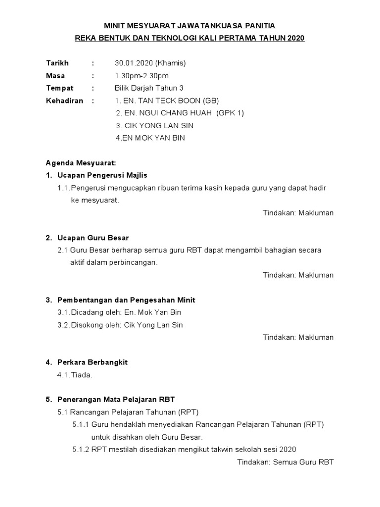 Doc Minit Mesyuarat Panitia Reka Bentuk Dan Teknologi Kali Pertama 2017 Kinjang Chenderiang Academia Edu