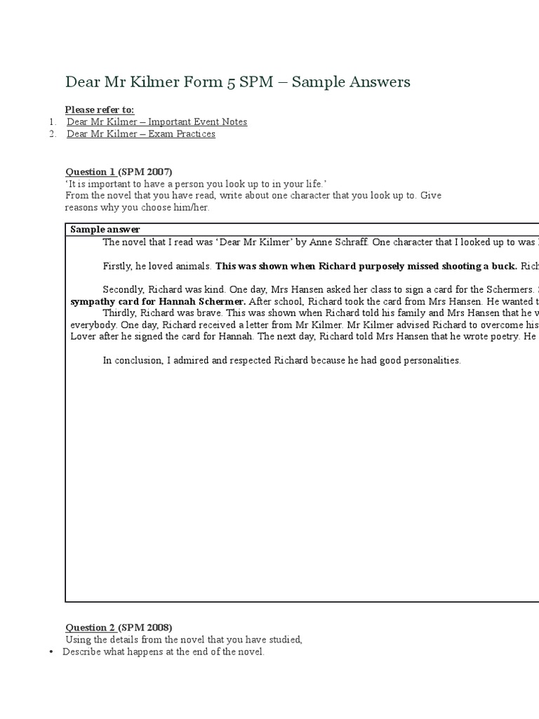 371765464 Modul Dear Mr Kilmer Form 5 Spm Docx Dear Mr Kilmer Form 5 Spm U2013 Sample Answers Question 1 Spm 2007 U2018it Is Important To Have A Person Course Hero