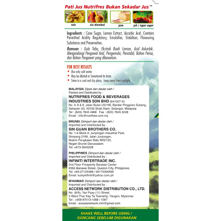 Nutrifres Lemon Fruit Juice Concentrate Cordial 1 Liter Shopee Malaysia