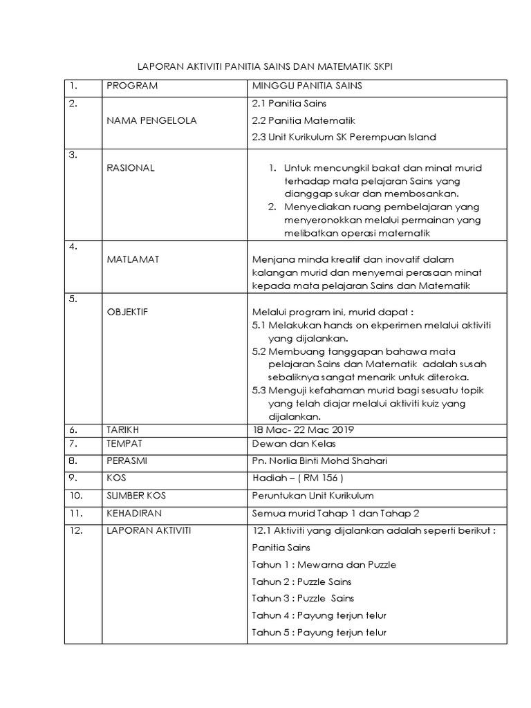 Laporan Aktiviti Explorace Matematik Sains 2013 Pdf Document