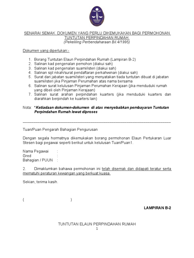 Senarai Semak Tuntutan Elaun Perpindahan Rumah