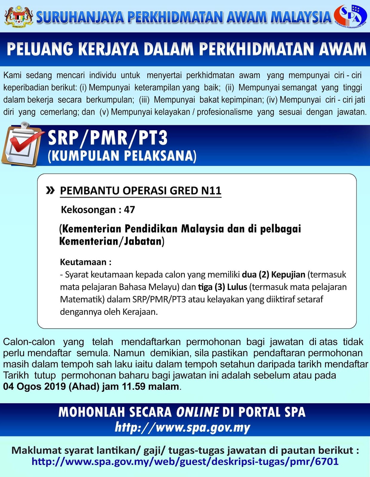 Jawatan Kosong Di Suruhanjaya Perkhidmatan Awam Spa Jawatan Pembantu Operasi N11 Jobcari Com Jawatan Kosong Terkini
