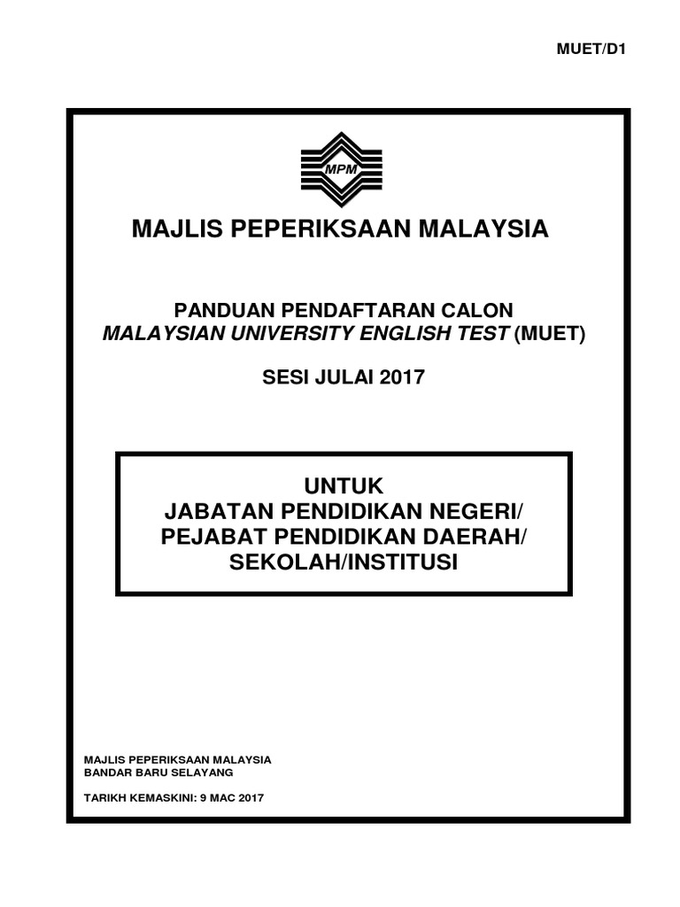 Panduan Pendaftaran Muet Sesi Mac 2018 Borang Online