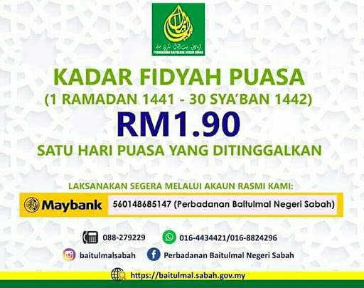 Kadar Fidyah Puasa Bagi Negeri Sabah 1441h 1442h Di 2020 Ramadan Agama